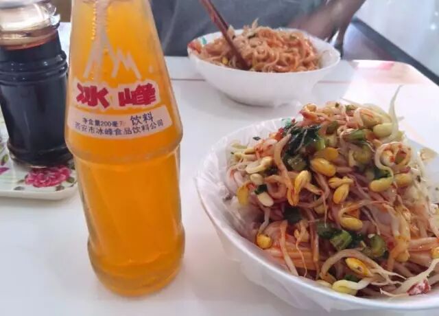 你可别玩过头,忘了品尝关中小吃——左手肉夹馍,右手筷挑凉皮,时不时侧过脑袋吸一口冰峰,早、中、晚三餐都吃不腻。