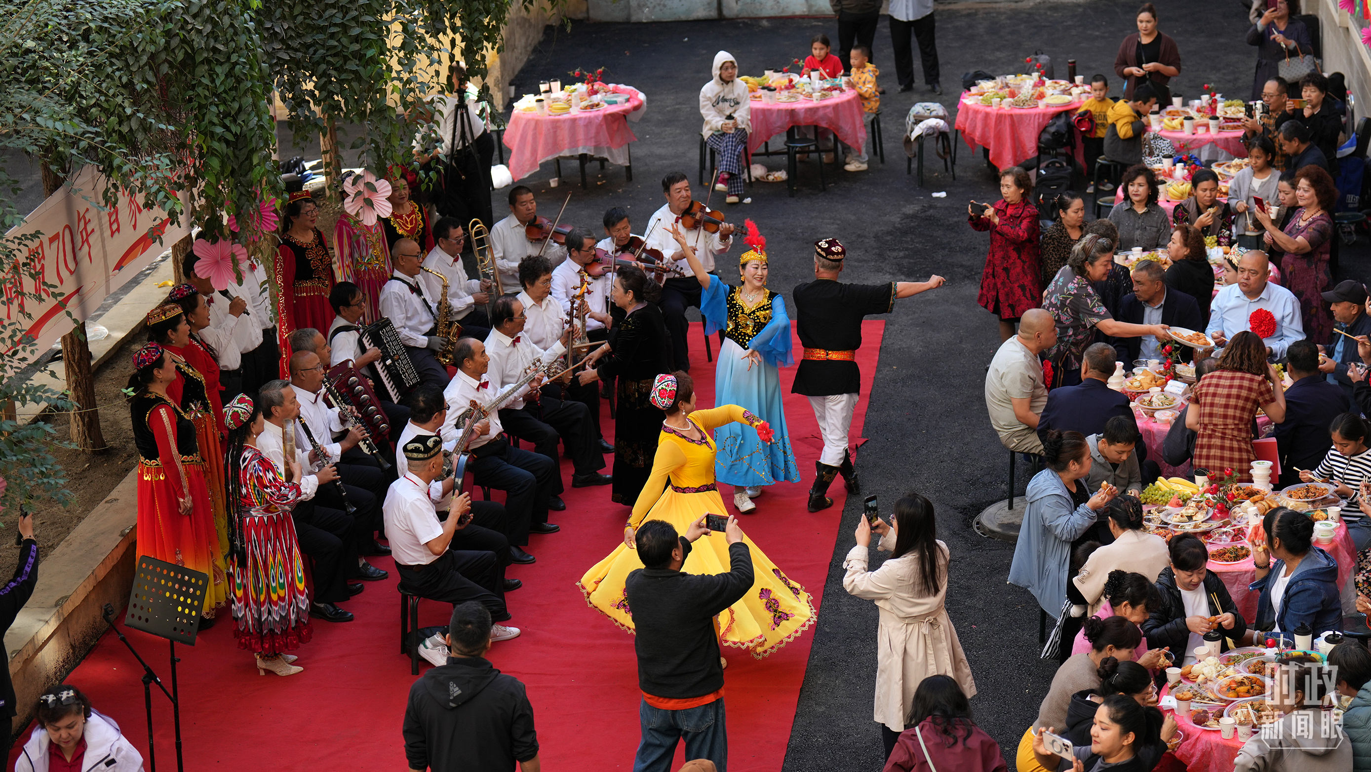 金秋时节,晴空万里。新疆各族群众热情迎接习近平总书记和中央代表团的到来。