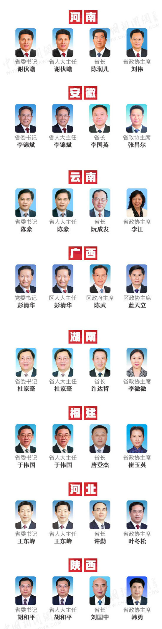 附:2018年省级地方两会后各地四大班子负责人一览: